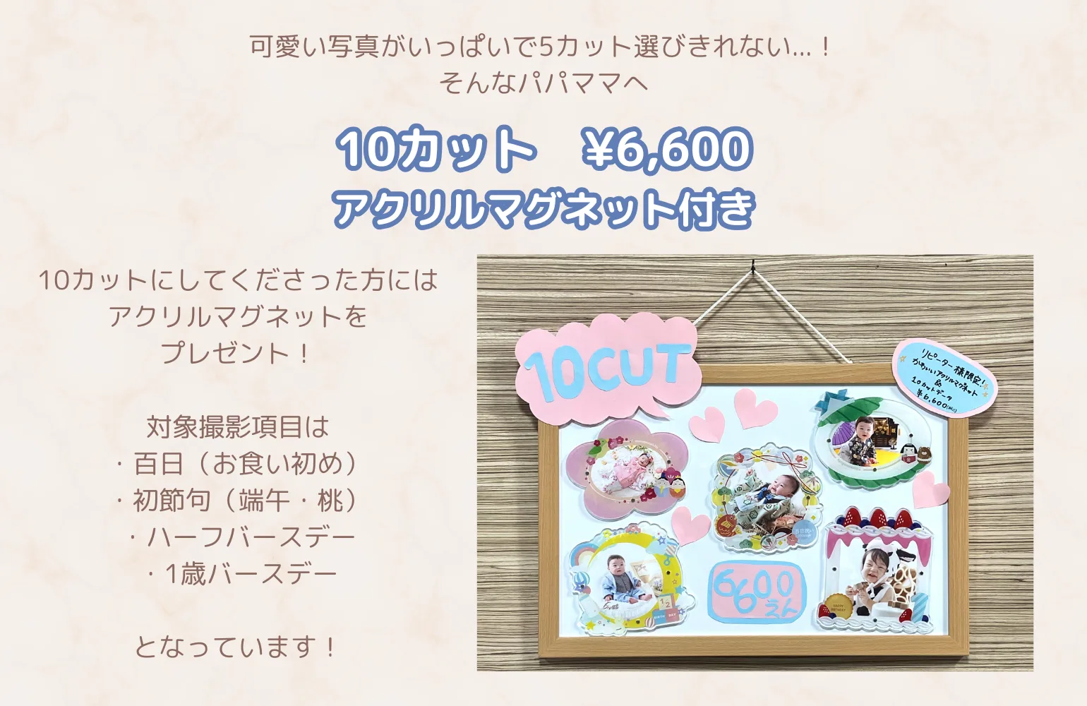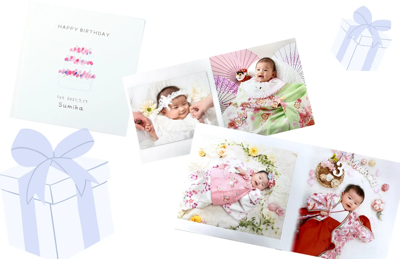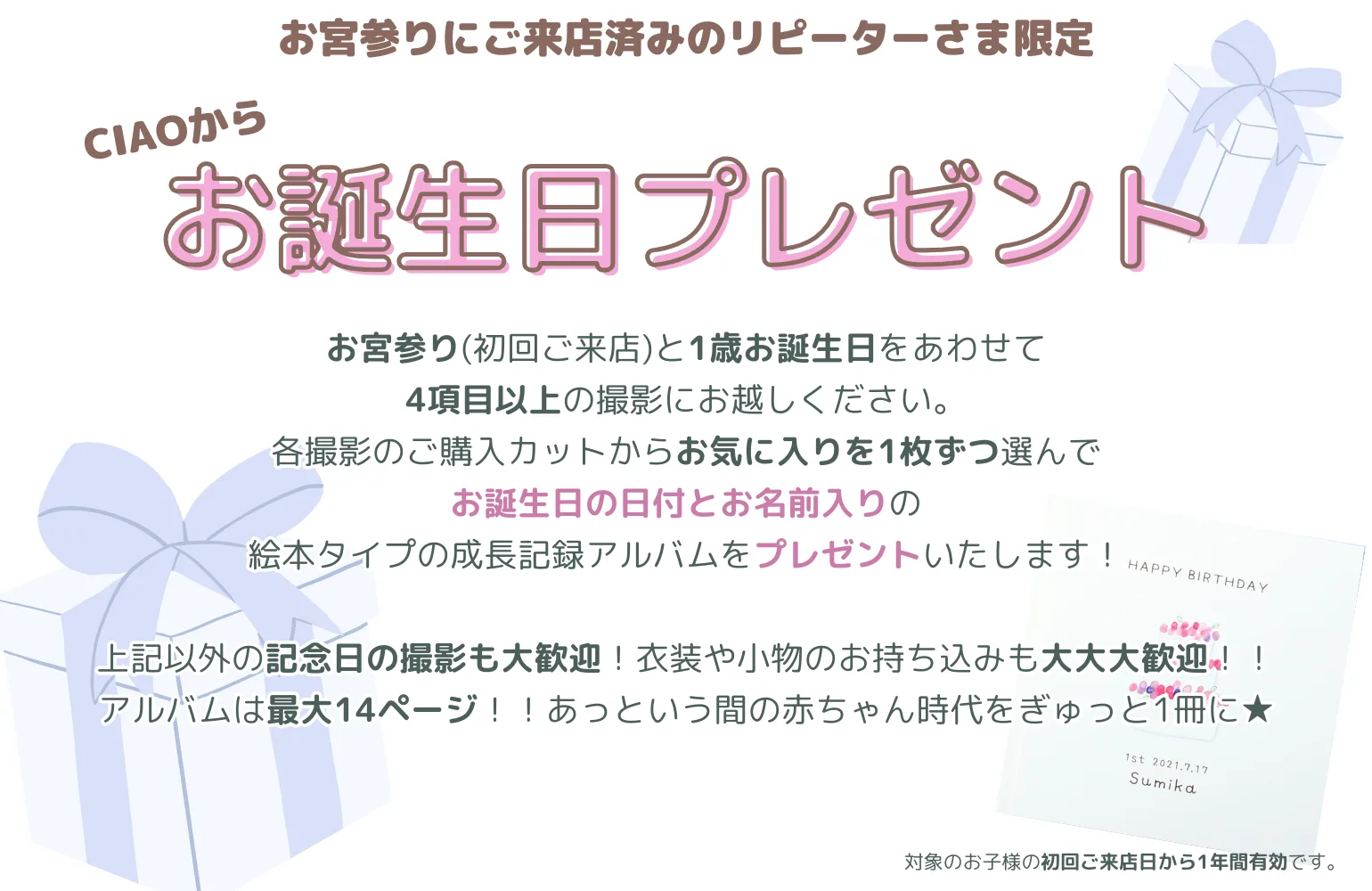 お宮参り以外のベビー撮影で、1歳バースデーを含め3回以上ご来店いただいた方には