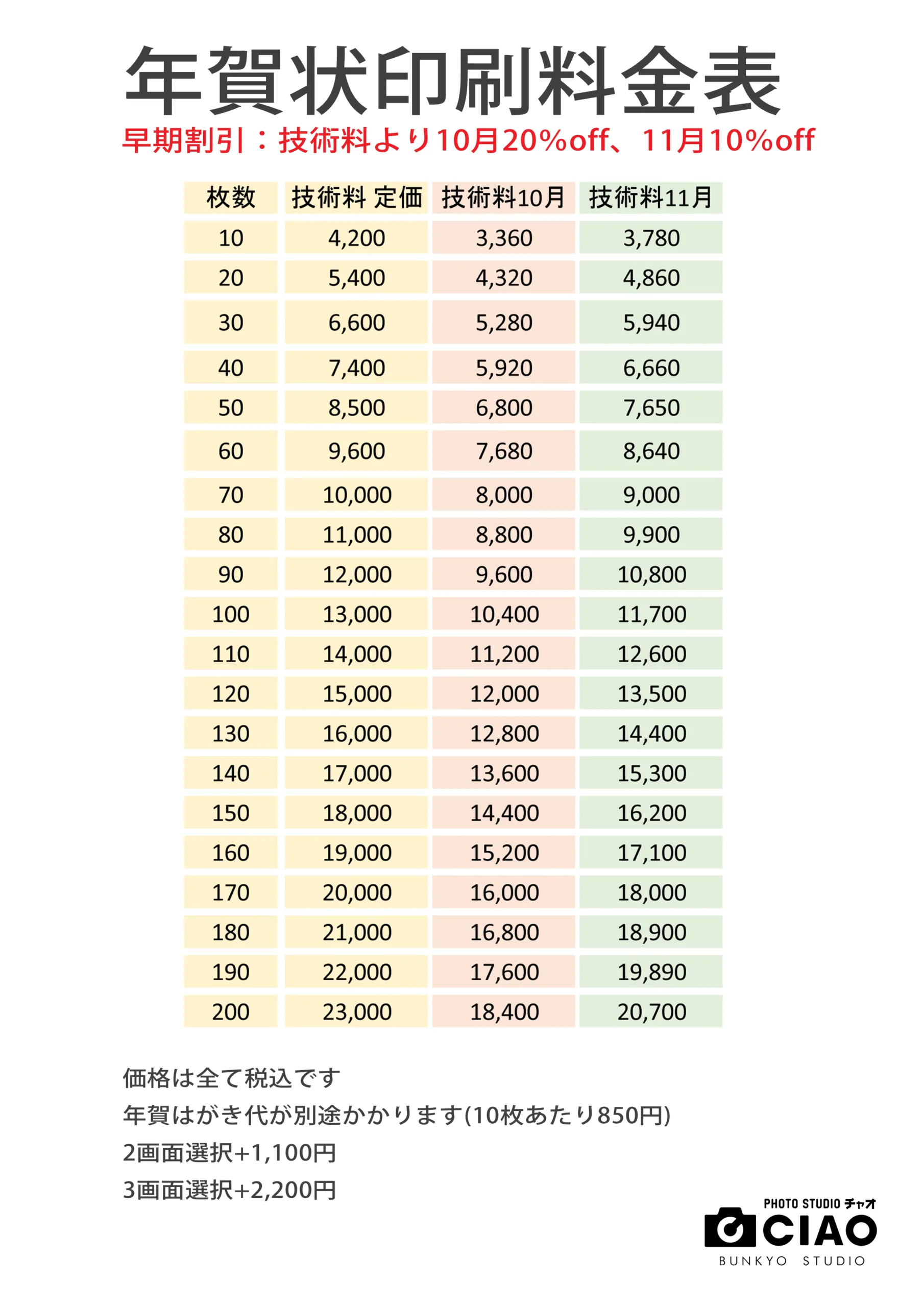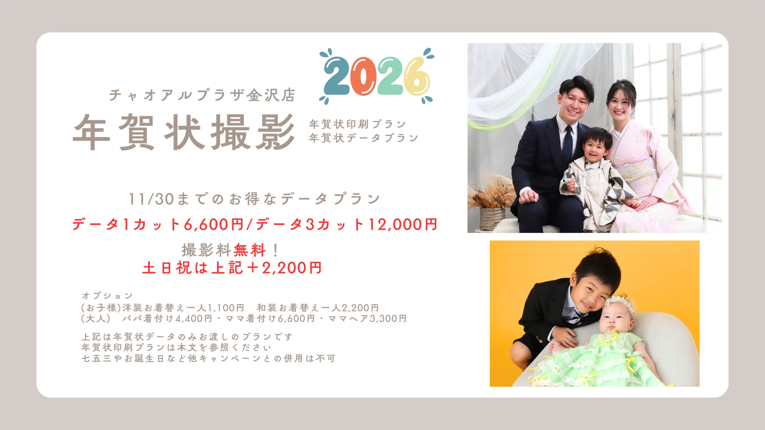 チャオアルプラザ金沢店では年賀状の早めの撮影をお勧めしています!