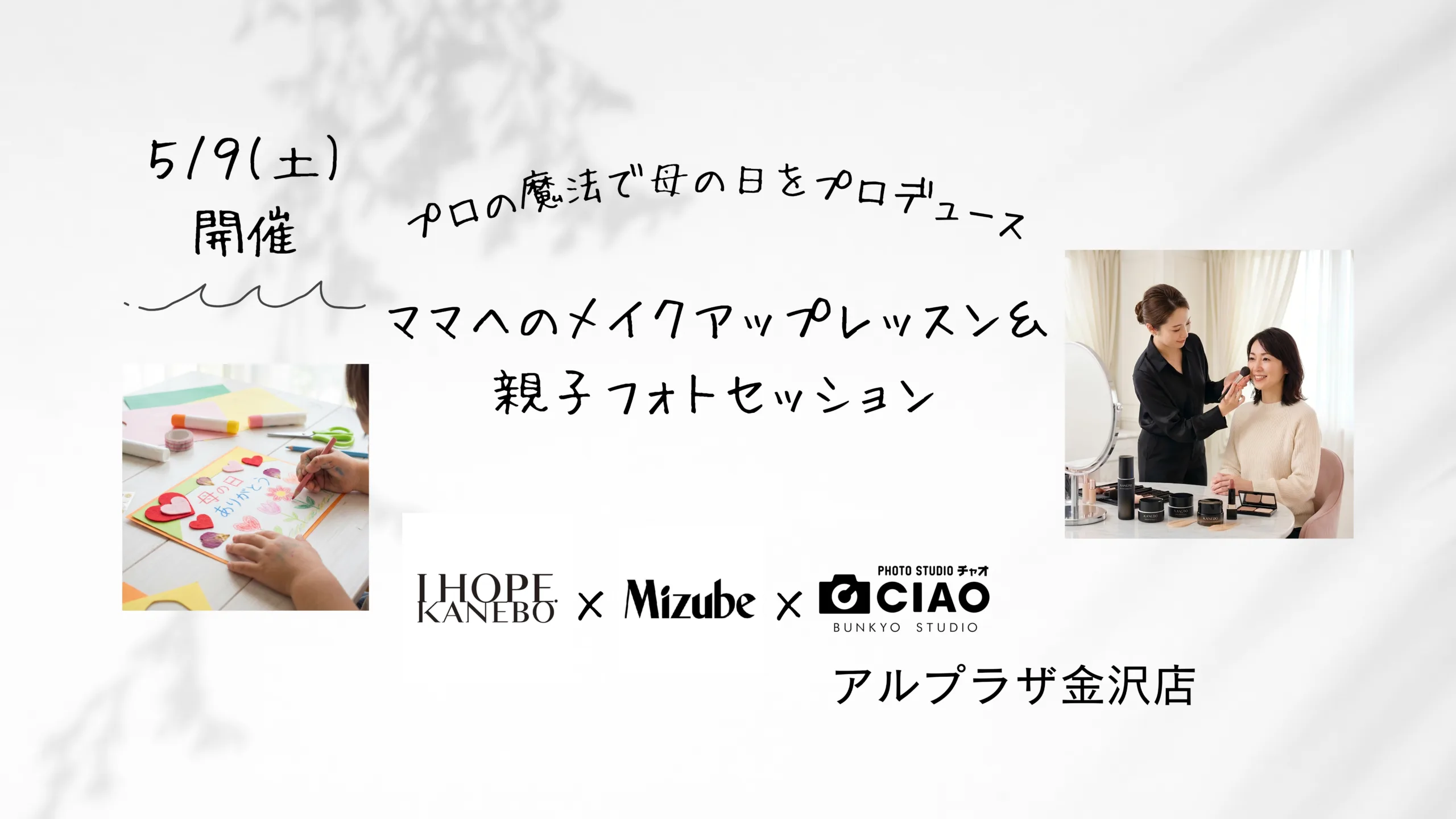 【チャオアルプラザ金沢店】ママへのメイクアップレッスン&親子フォトセッション