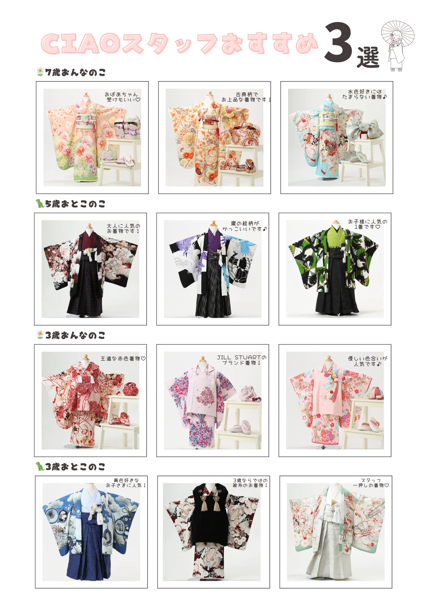 王道の古典柄、ふわふわパステルから個性派まで、たくさんの小物からお嬢様にぴったりのコーディネートをご提案いたします。