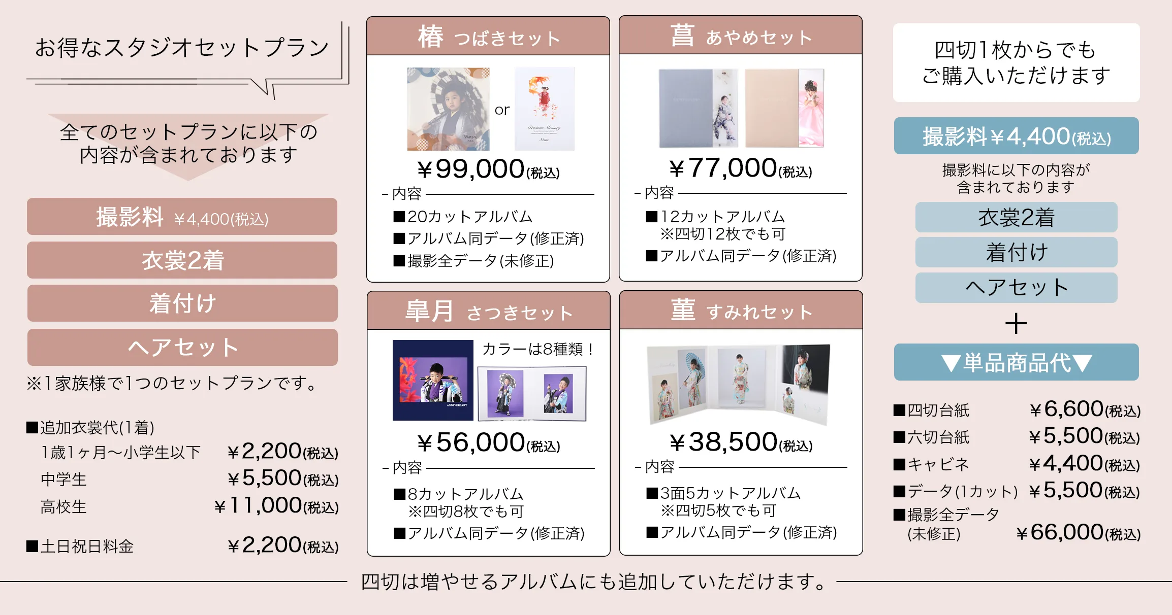 (現在七五三のみ承っております。料金の詳細は七五三のページをご覧ください。)