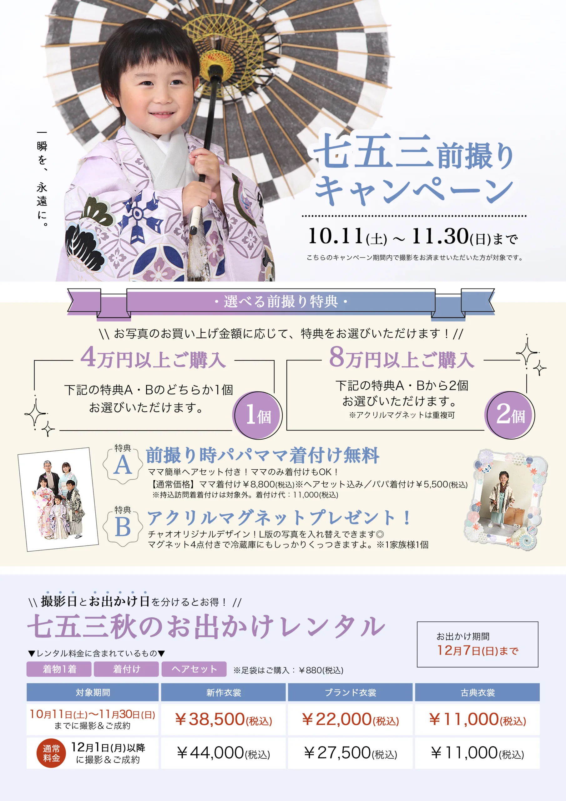 上記キャンペーン期間内に撮影とレンタルのご成約をしていただくと、